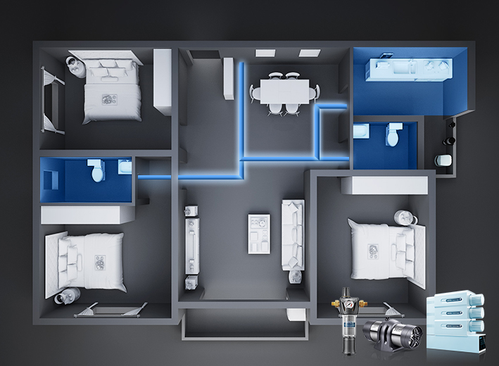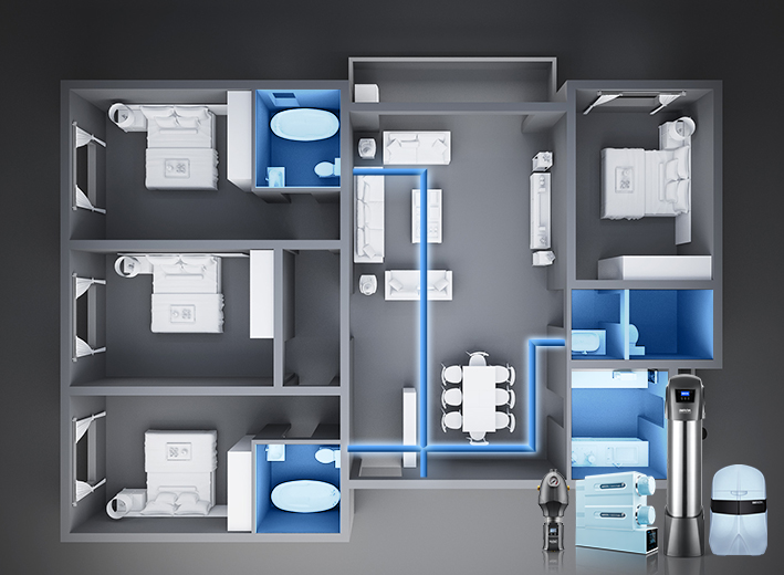 ? 7~8T/H凈水流量,高峰用水不等待,適用于別墅級(jí)大戶(hù)型
